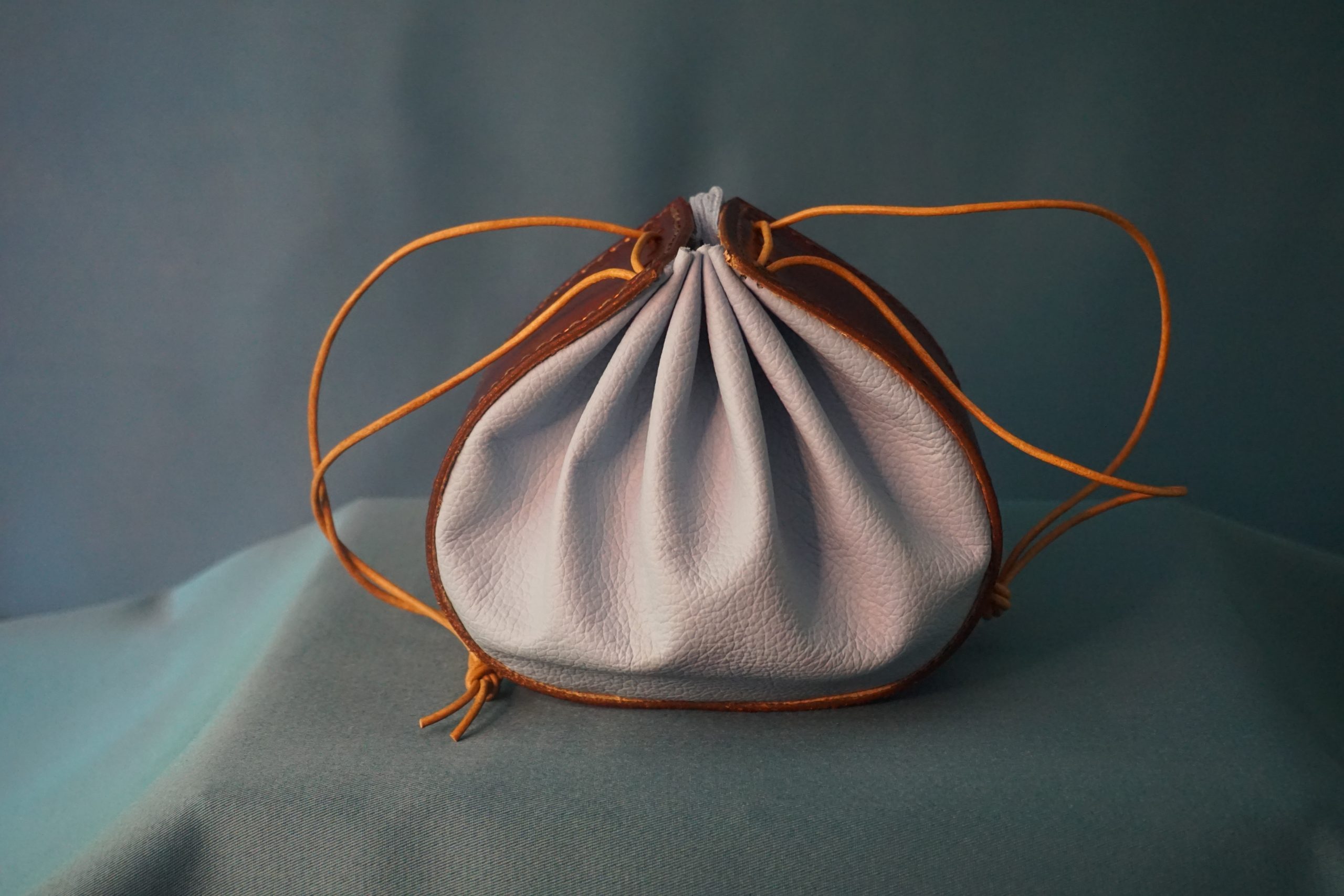 - Matériaux : La bourse est confectionnée en cuir véritable, avec une association de deux couleurs dominantes : un cuir bleu souple pour le sac principal et un cuir marron rigide pour les bordures.